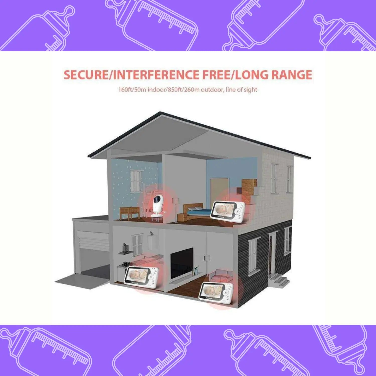 Mit seinem 4,3-Zoll-HD-Bildschirm bietet dieses Babyphone eine scharfe und flüssige Überwachung. Dank Nachtsichtmodus können Sie Ihr Baby auch im Dunkeln im Auge behalten, ohne seinen Schlaf zu stören.